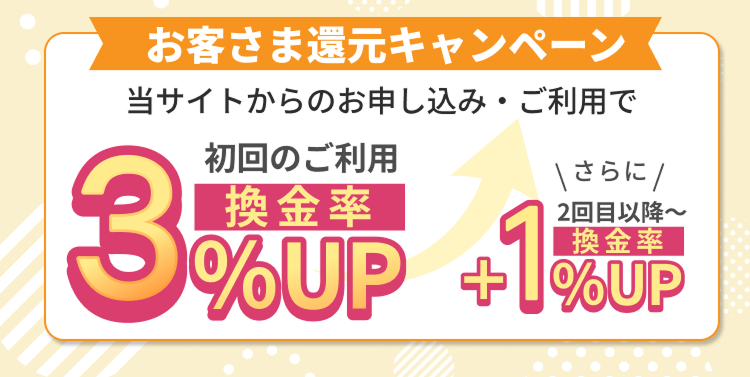 さらに、利用が初めての方&事業主の方対象の換金率アップキャンペーンでお得に現金化が可能です。