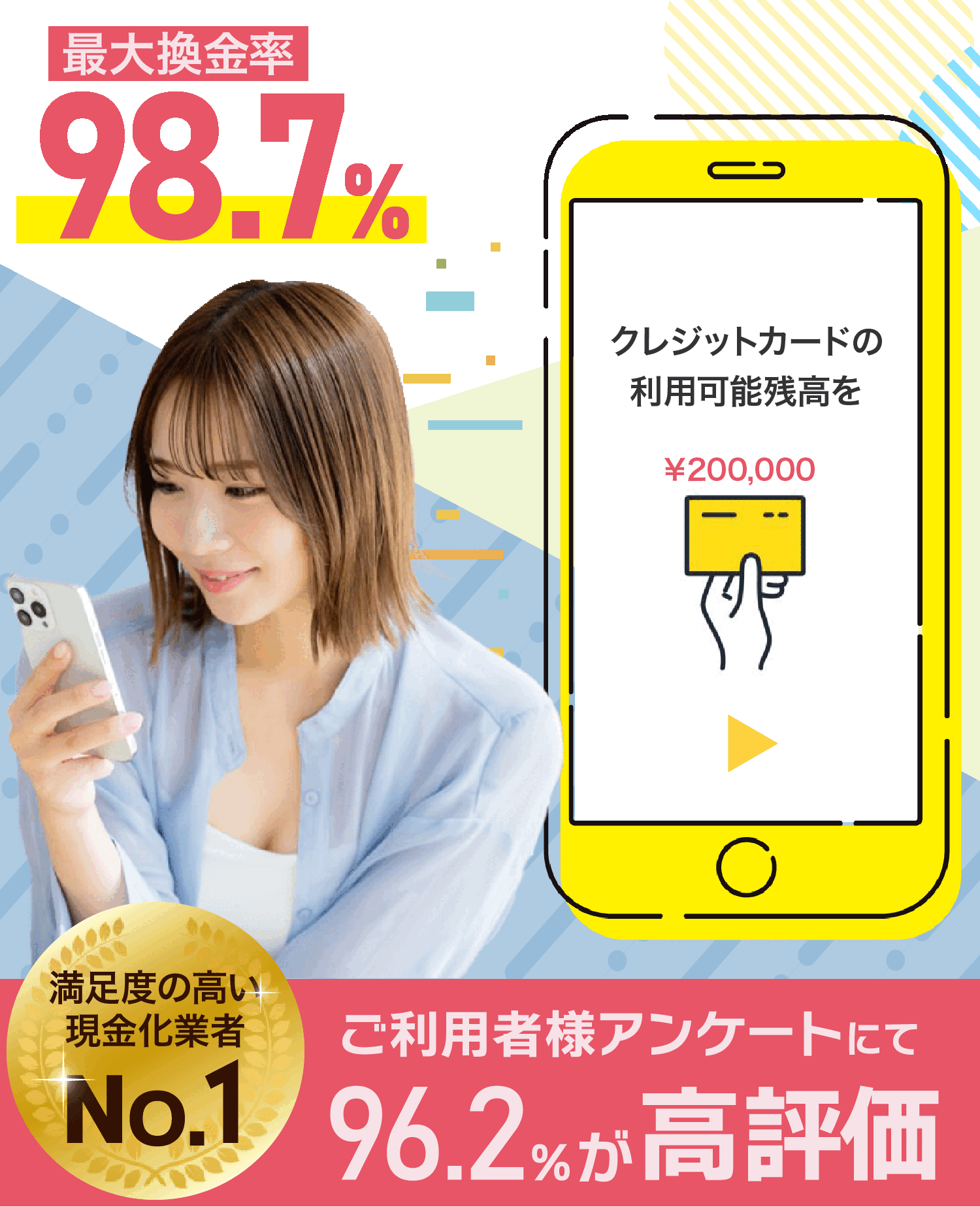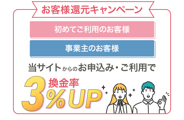 さらに、利用が初めての方&事業主の方対象の換金率アップキャンペーンでお得に現金化が可能です。